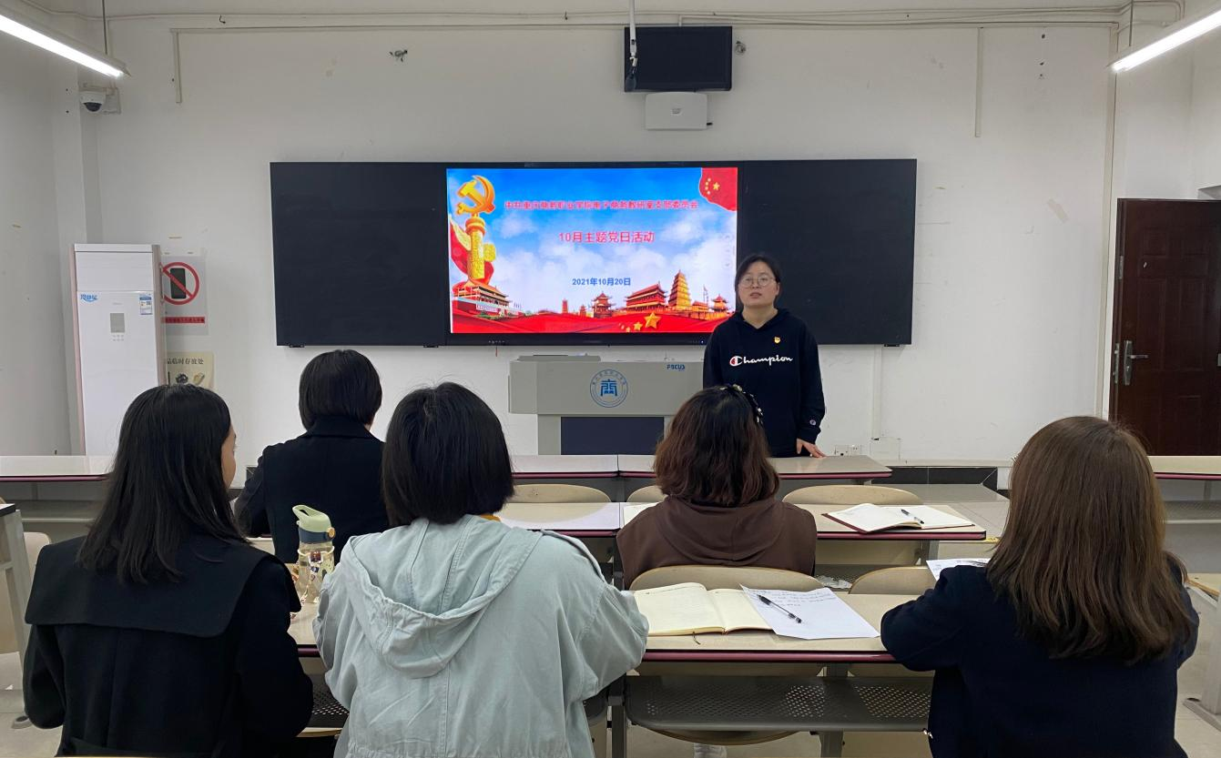 姚斯杰同志首先带领同志们一起学习了7项文件,分别是:(1)习近平总书记在纪念辛亥革命110周年大会上的重要讲话精神;(2)习近平总书记在中央人才工作会议上的重要讲话精神;(3)习近平总书记重要文章《用好红色资源、赓续红色血脉,努力创造无愧于历史和人民的新业绩》(2021年10月1日出版的《求是》杂志第19期);(4)习近平总书记在中共中央政治局第三十三次集体学习时的重要讲话精神;(5)习近平总书记在陕西榆林考察时的重要讲话精神;(6)重庆市教育委员会《关于在全市教育系统深人开展向王红旭老师学习的通知》文件精神;(7)习近平总书记给全国高校黄大年式教师团队代表回信。学习结束后,党员同志们积极发表感想,并表态一定认真贯彻落实习近平总书记的重要讲话精神,在工作和生活中不断实践。