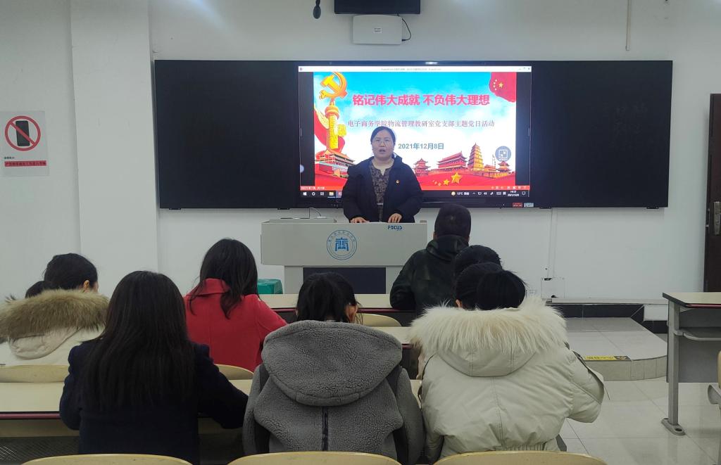 根据《重庆商务职业学院组织人事处关于开展12月主题党日活动的通知》要求,物流管理教研室党支部于2021年12月8日下午在1222教室开展以“铭记伟大成就,不负伟大理想”为主题的党日活动。