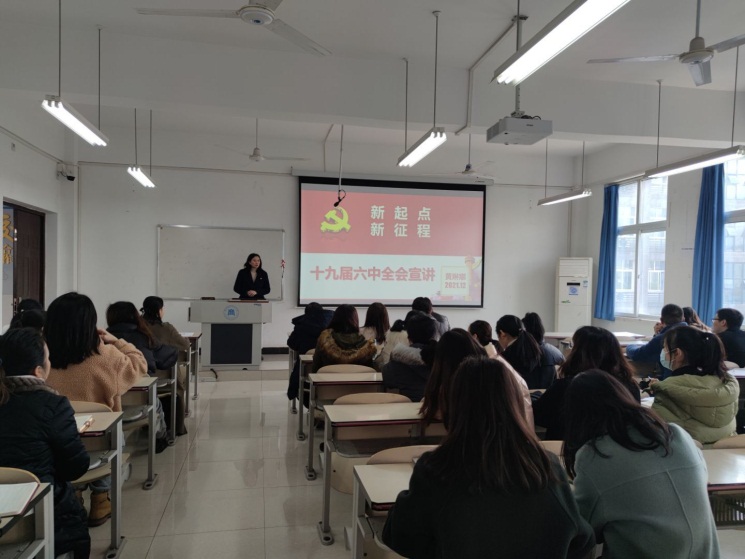 12月22日电子商务学院党的十九届六中全会精神宣讲会在1322教室举行,本次宣讲会由电子商务学院党总支书记黄琳娜同志主讲,电子商务学院全体教师和学生代表参加。