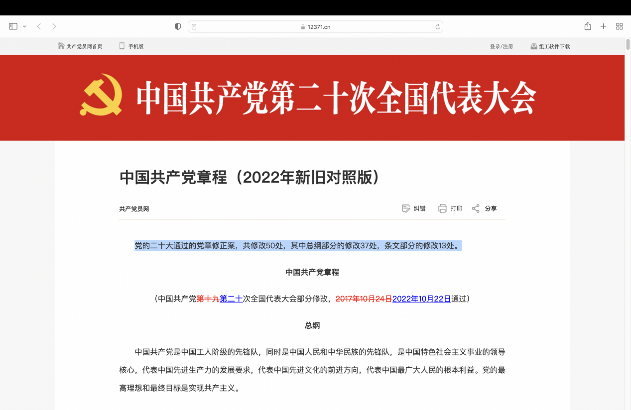 接下来,姚斯杰同志带领大家学习了新修订的中国共产党党章。党的二十大通过的党章修正案,共修改50处,其中总纲部分的修改37处,条文部分的修改13处。