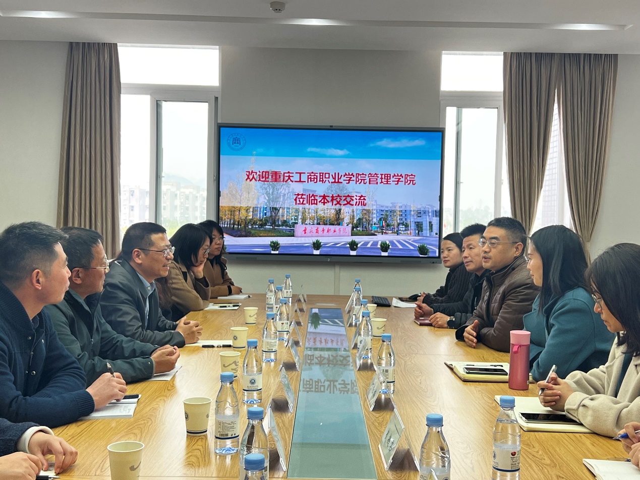 2023年2月28日下午,重庆工商职业学院管理学院院长黄翔一行七人来我校调研交流,学校院长江涛,电子商务学院院长黄琳娜、副院长赵连明、教务科科长赵季等参加了座谈会。