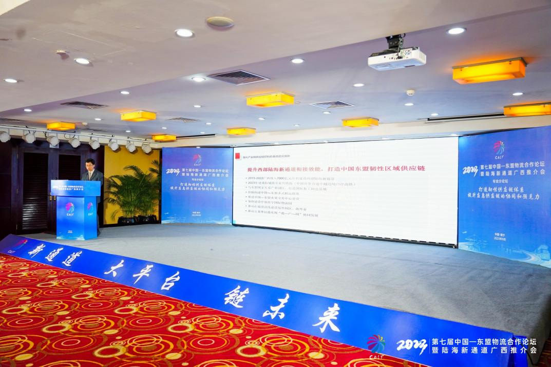 2023年18-19日,第七届中国—东盟物流合作论坛暨陆海新通道广西推介会在广西南宁举行,本届论坛由广西壮族自治区人民政府和中国物流与采购联合会主办。中国—东盟物流合作论坛,是东博会和峰会架构下,由国家行业协会和自治区政府共同主办的高级别国际物流专业论坛。2010年论坛首次举办,到2018年已成功举办6届。本届论坛的主题是“新通道 大平台 链未来——构建面向东盟国际大通道 共建区域协同产业链供应链”。