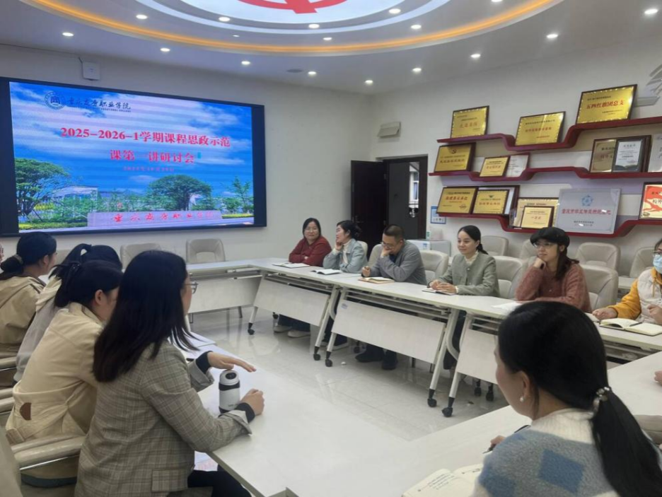 2025年10月29日,2025—2026年第一学期“课程思政”示范课在学校学术报告厅举行,电商物流学院全体青年教师到场观摩,并于听课后在1334开展教学研讨会。