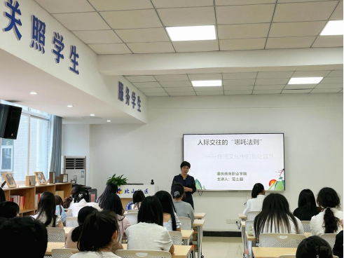 最后,范老师鼓励同学们将和而不同、反求诸己、仁者爱人等传统文化智慧用于当代生活,借鉴“哪吒法则”和谐交往。这场别开生面的讲座将传统智慧的星火在同学们心中悄然点燃,从化解争执到主动互助,从改变自我到温暖他人,传统文化由此焕发出新的活力,智慧的种子将在校园各处生根发芽,持续赋能重商学子的社交与成长。