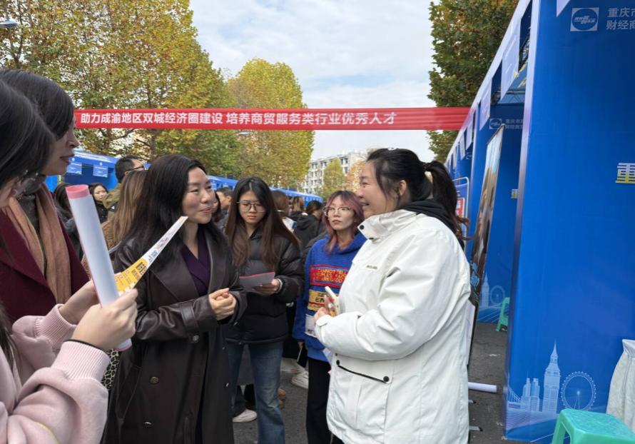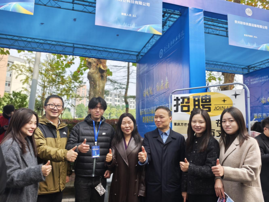 11月19日,学校成功举办“渝快就・创未来”重庆市2026 届普通高校毕业生商贸服务类专场双选会暨重庆商务职业学院 2025年秋季校园双选会。活动以“精准对接岗位需求,助力毕业生高质量就业”为核心,为商贸服务类人才与企业搭建高效对接桥梁。为进一步拓宽毕业生就业渠道、深化校企协同育人机制,学校党委副书记余晓玲带领电商物流学院党政领导班子、学团办成员、各专业带头人及毕业班辅导员一行走进招聘会现场,同步开展访企拓岗专项活动,与参会企业面对面深度沟通,取得了良好成效。