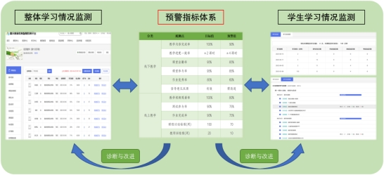 其次,利用平台对教学效果进行监测、预警、评价、改进,为教学质量提高信息化保障,促进教学质量的螺旋提升,具体如下: