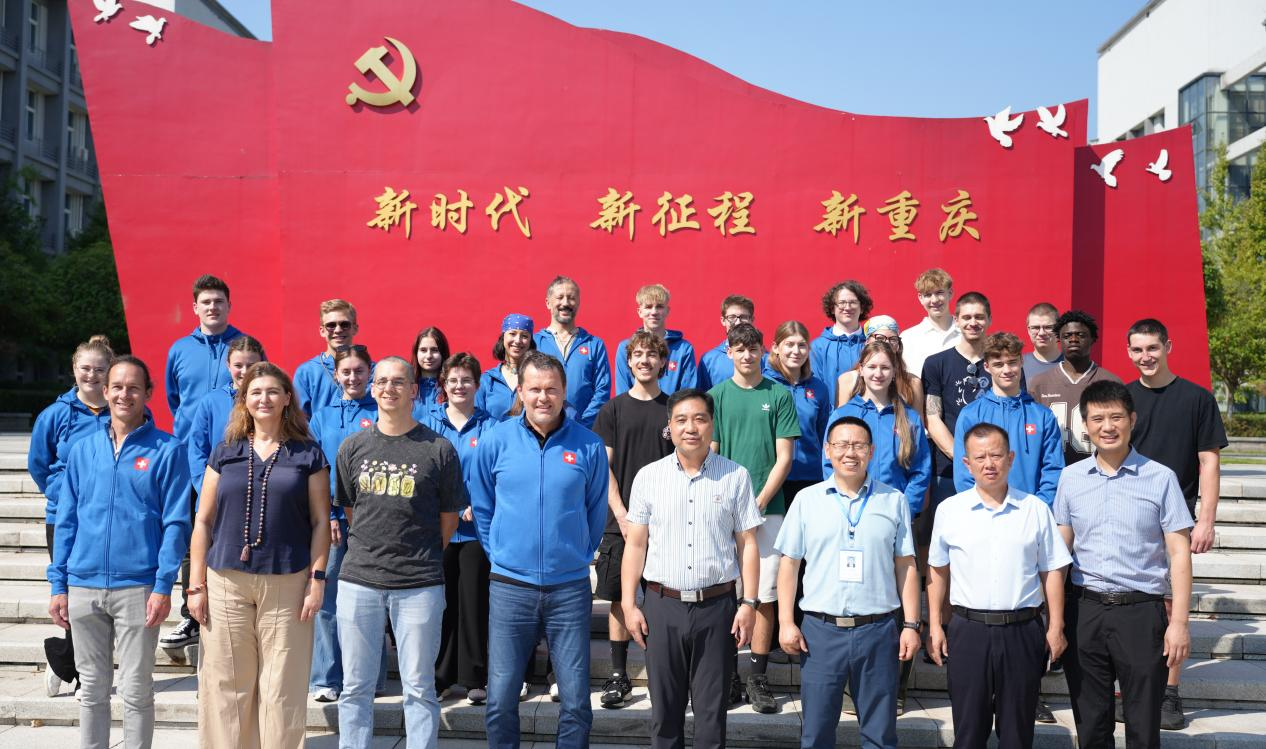 【文/对外合作交流中心 图/党委宣传部】10月11日上午,瑞士学生“巴渝美食文化之旅”项目开班仪式暨安全教育讲座顺利举行。瑞士格拉斯州工业职业学校(Gewerblich-Industrielle Berufsfachschule Glarus)校长库内特·罗杰·帕斯卡(Cuennet Roger Pascal)率该校及瑞士纳沙泰尔州职业培训中心(Centre de formation professionnelle neuchâtelois)共28名师生参会。学校党委委员、副校长管军出席活动并致辞,对外合作交流中心、通识教育学院(国际学院)、烹饪与食品学院等相关人员参加活动。