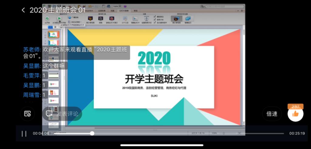 此次主题班会突破时空限制,以网络直播、观看“开学第一课”视频、疫情热点探讨、隔离生活讨论等多种形式将温暖撒向了五湖四海,将健康教育传播到每位同学心中。通过主题教育,辅导员向同学们及时传达了党中央相关决策部署、学校疫情防控工作各项要求,引导学生掌握科学的防控知识,做好个人防护。同时贯彻学校“延期返校不停学”的部署,引导学生做好学习、生活规划,学会自律、自学、自强,帮助学生借助钉钉、腾讯课堂、云课堂、智慧树等网络平台积极参与线上直播课程,努力提升,增长本领,实现追赶超越。