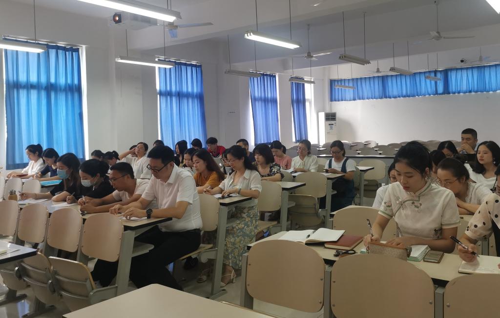 李春红向全体教职工介绍了学院新成立后人员组成、机构设置及教研室设置情况,宣布了新任党政班子工作分工,传达了学校部门负责人及二级学院党政负责人会议精神,并从党建工作、教学工作、招生就业及学团工作、行政后勤工作等四个方面详细汇报了学院暑假工作完成情况及新学期的工作目标。