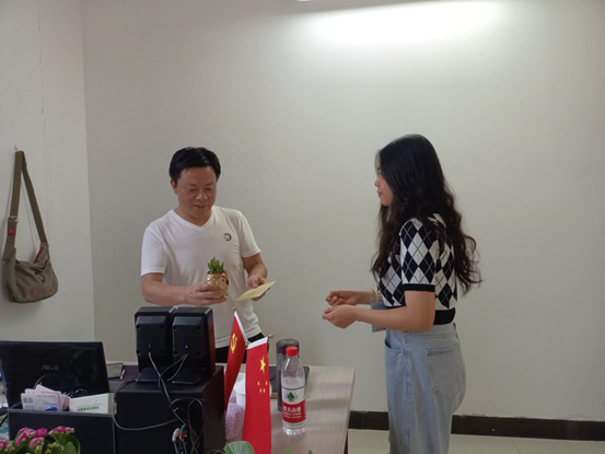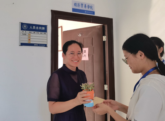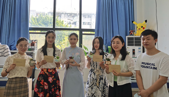 教师节当天早上,学院党政班子通过QQ群、短信等方式发送祝贺图、祝福语等向全体教职工送上节日的祝福。在团总支学生会的组织下,同学们亲手在卡片上写下最想对老师表达的心声并送到老师们手中,一笔一划传递浓浓师生情。学生会干部们向全体老师送上精心准备的盆栽,通过充满勃勃生机的绿植表达对老师的祝福之意、感恩之情。