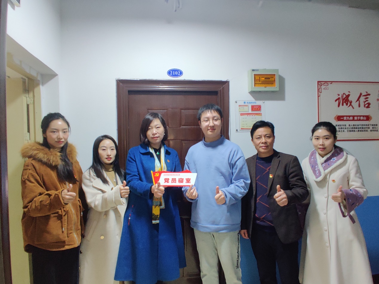 【文/图 王瑶】为进一步加强学生党员队伍建设,充分发挥学生党员的先锋模范作用,经济贸易学院学生党支部于2021年12月1日在学生宿舍男寝A栋、女寝C栋开展了学生党员寝室授牌仪式,学院党总支书记、院长李春红、党总支副书记贺昌、支部全体党员参加了此次活动。