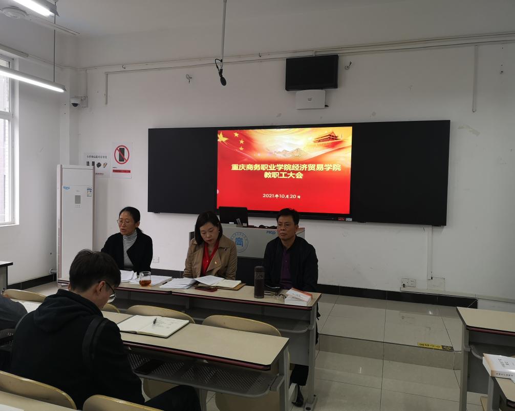 10月20日,经济贸易学院在1306召开教职工大会,安排部署了近期工作,会议由学院党总支书记、院长李春红主持,全体教职工参加了会议。