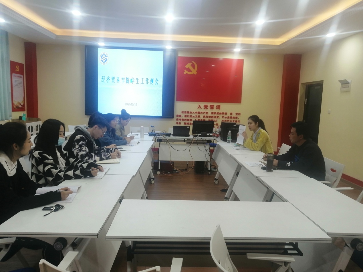 【文/谢蓉 图/王泽秀】10月18日,经济贸易学院在1301召开了10月学生工作例会,学院党总支副书记贺昌、学团办副主任王瑶、全体辅导员参加了会议,王瑶主持会议。
