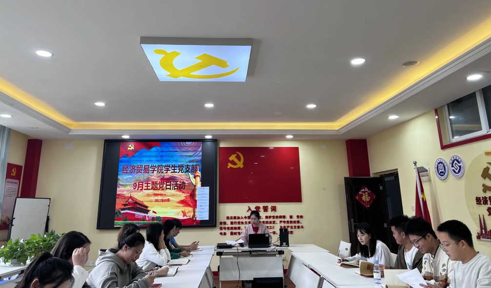 【文/王瑶 图/周易】经济贸易学院学生党支部开展了一次理论学习和贯穿全月的志愿服务相结合的主题党日活动,组织学生党员担任新生班导生,全程参与迎新与军训工作,为新生开启大学旅程引路领航并于9月28日在1301教室开展理论学习,支部全体党员参加,会议由支部书记王瑶同志主持。