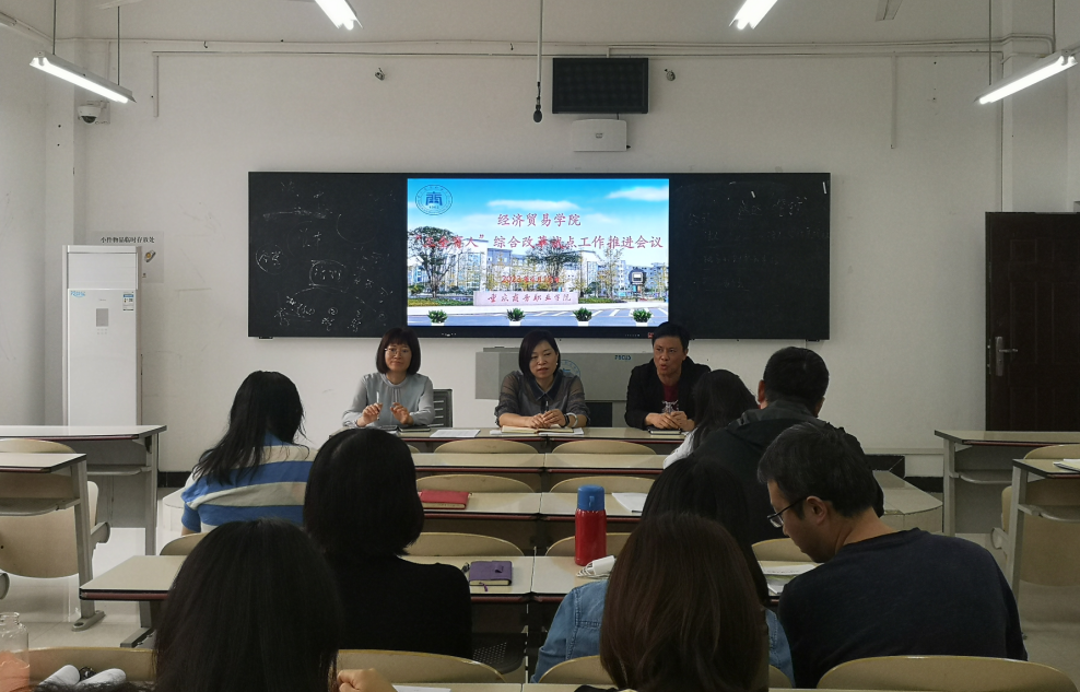 【文/图 贺睿】4月13日下午,经济贸易学院在1308教室召开“三全育人”综合改革试点工作推进会议。会议由学院党总支书记、院长李春红主持,学院全体教职工参加会议。