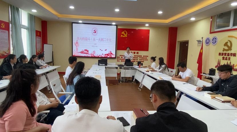 【文/张钞菱图/欧阳左钱】2023年5月24日上午,经济贸易学院学生党支部在1301党建工作室开展学习贯彻习近平新时代中国特色社会主义思想主题教育专题党课。此次党课由支部书记王瑶同志讲授,支部全体党员参加学习。
