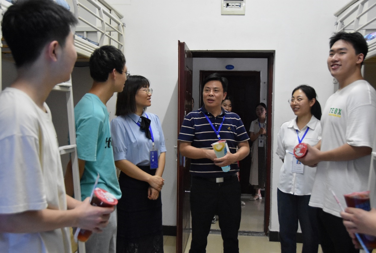 学院党政班子带领学工队伍走访新生寝室,送去清凉饮料,关心慰问学院2023级新生。副院长王芳与同学们亲切交流,叮嘱同学们接下来要合理安排个人时间,以崭新的精神面貌投入到大学学习生活。党总支副书记贺昌认真倾听了同学们入校以来对学校生活的感受,了解同学的所学专业及未来规划,勉励同学们做新时代的奋进者。“炎炎夏日送清凉,殷殷关怀润人心”,接到学院领导和老师们送来的“清凉饮料”,同学们脸上露出了灿烂的笑容。