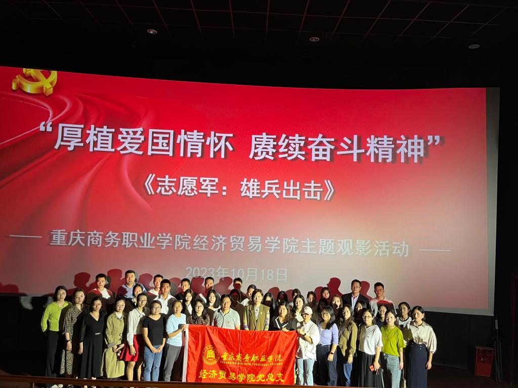 【文/图 高红】为进一步加强爱国主义教育和师德师风建设,厚植家国情怀,强化党性修养。2023年10月18日,经济贸易贸易学院党总支组织全体党员前往万众国际影城观看《志愿军:雄兵出击》电影。