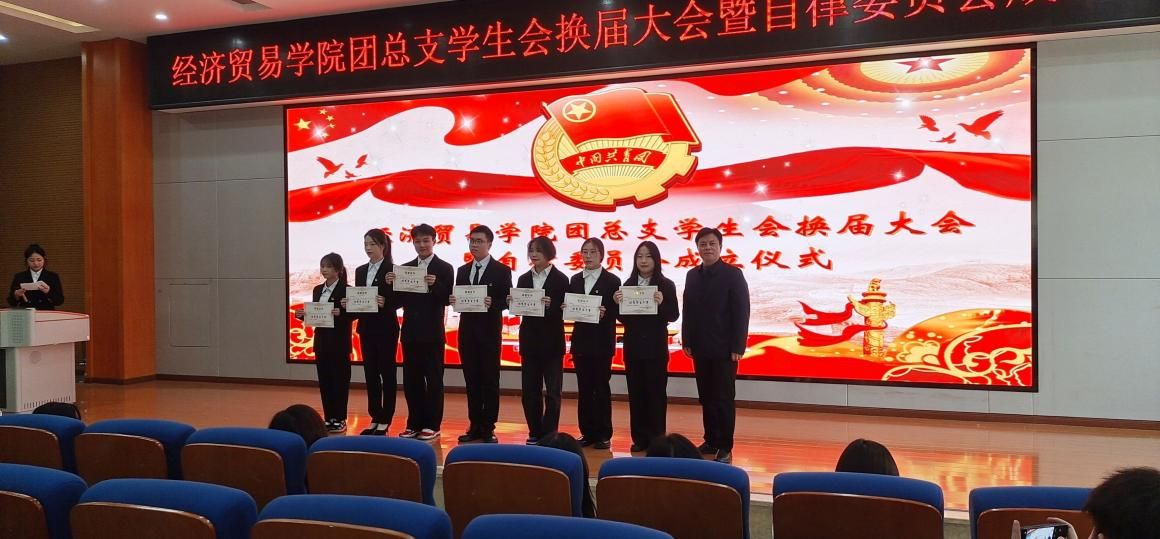 文/张美 图/张如蓝 龙林】2023年11月17日中午,经济贸易学院在学术报告厅召开了团总支学生会换届大会暨自律委员会成立仪式。学院党总支书记、院长李春红,党总支副书记贺昌,学团办副主任王瑶以及全体学工人员出席会议,第二届、第三届团总支学生会全体成员及第一届自律会全体成员参会。