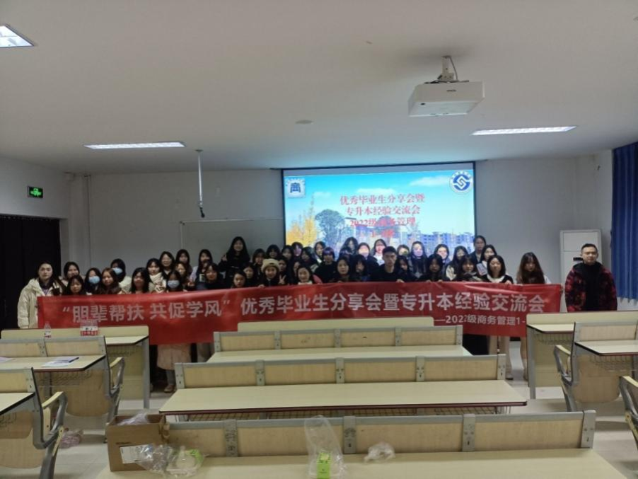 【图/丁斯允 文/牟聪 丁斯允 向绍美 杨丰瑜】为加深同学们对专升本考试的认识,解答专升本复习过程中的困惑,进一步激发同学们对专升本的积极性,2023年12月17日,经济贸易学院2022级商务管理1-2班在1217教室举办2023-2024学年“朋辈帮扶 共促学风”优秀毕业生分享会暨专升本经验交流会。