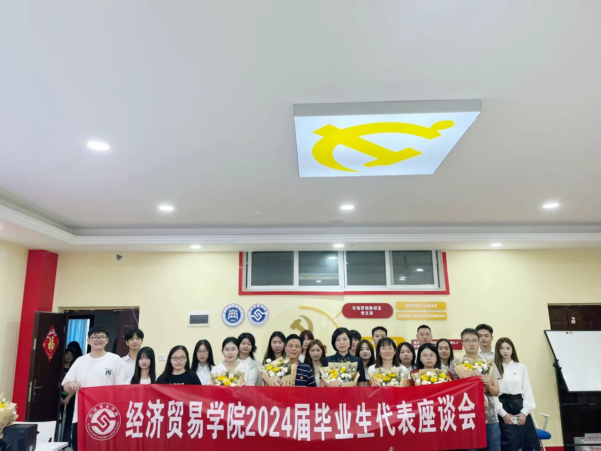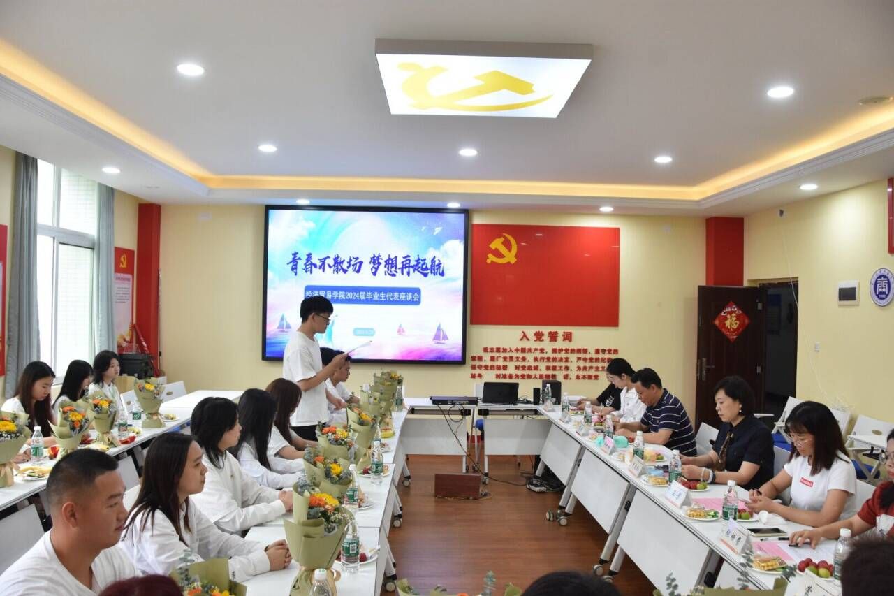 【文/蒋杨 图/王瑶】2024年6月26日,经济贸易学院在1301党建工作室召开2024届毕业生代表座谈会。学校党委副书记余晓玲出席会议,经济贸易学院党政班子、教师代表和毕业生代表参加会议,会议由学院党总支副书记贺昌主持。