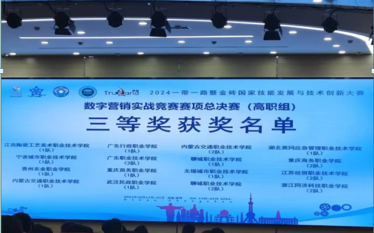 【文/图 张可忻】10月19日至20日,2024年“一带一路”暨金砖国家技能发展与技术创新大赛数字营销实战竞赛赛项决赛在河南郑州圆满落幕。在与来自全国各地的127支队伍同台竞技中,由张可忻、谭娅、谭秀芬3位教师指导的2支学生队伍,荣获两项全国三等奖。