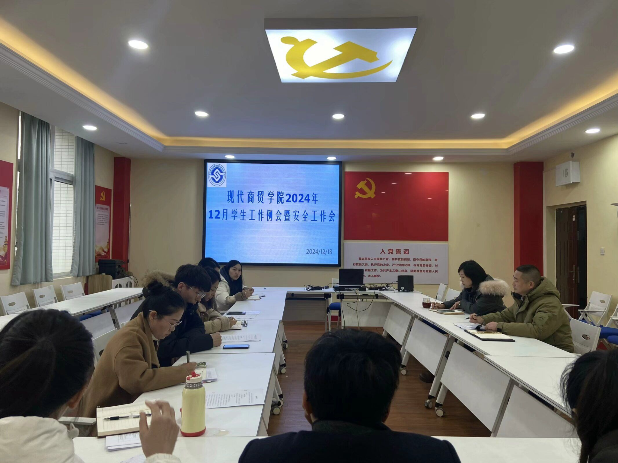 【文/图 蒋杨】2024年12月18日下午,现代商贸学院在1301召开12月学生工作例会,现代商贸学院党总支书记、院长李春红,党总支副书记徐鸥,学团办主任谢颖,全体辅导员及学工干事蒋杨参会。