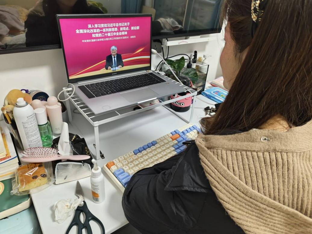 结合“集体学”与“个人学”,夯实思想理论基础。12月11日,学院全体教职工在1311集中观看了《深入学习贯彻习近平总书记关于全面深化改革的一系列新思想、新观点、新论断和党的二十届三中全会精神》等培训内容。在集中学习基础上,大家积极踊跃发言,联系工作实际谈收获,围绕学习内容谈体会,聚焦任务目标谈落实,分享学习心得体会。个人自学,全体党员撰写心得体会。