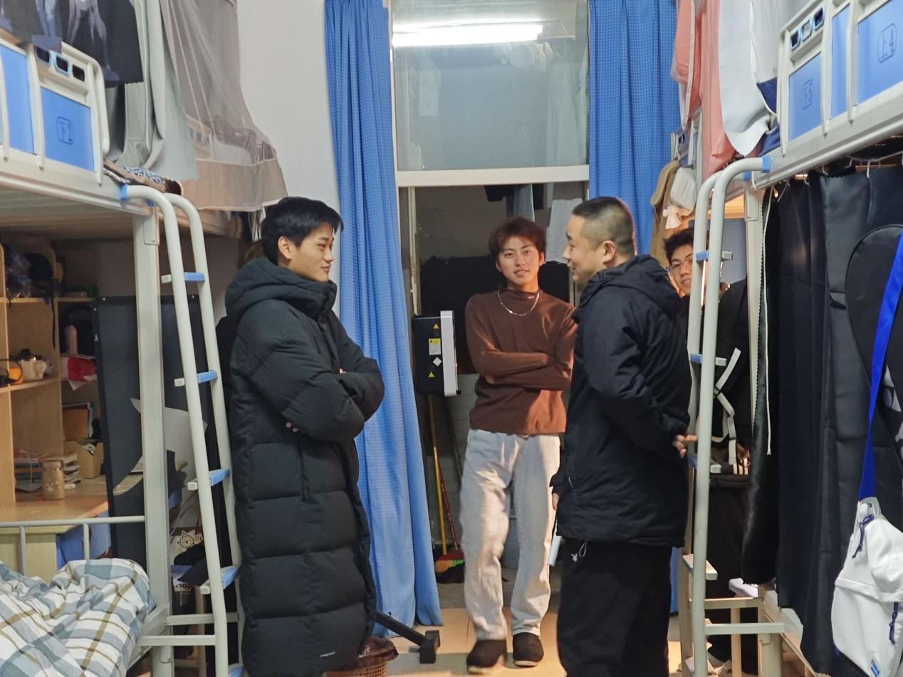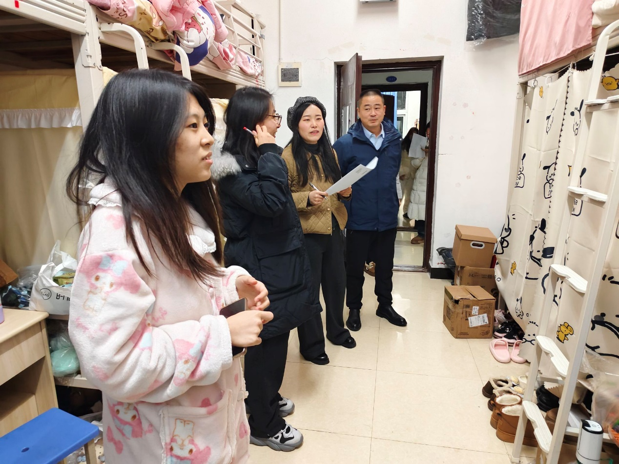 本次安全排查覆盖全院所有学生公寓,走访过程中,徐鸥带领学工队伍逐一深入到学生宿舍,对宿舍内的电线电器、消防设施进行仔细检查,叮嘱同学们注意安全用电、保持宿舍整洁。徐鸥以本次宿舍安全隐患排查为契机,深入了解他们的思想、学习、生活等状况,就同学们提出的问题耐心解答。辅导员提醒大家,年末岁尾,务必注意出行安全,合理安排假期时间。