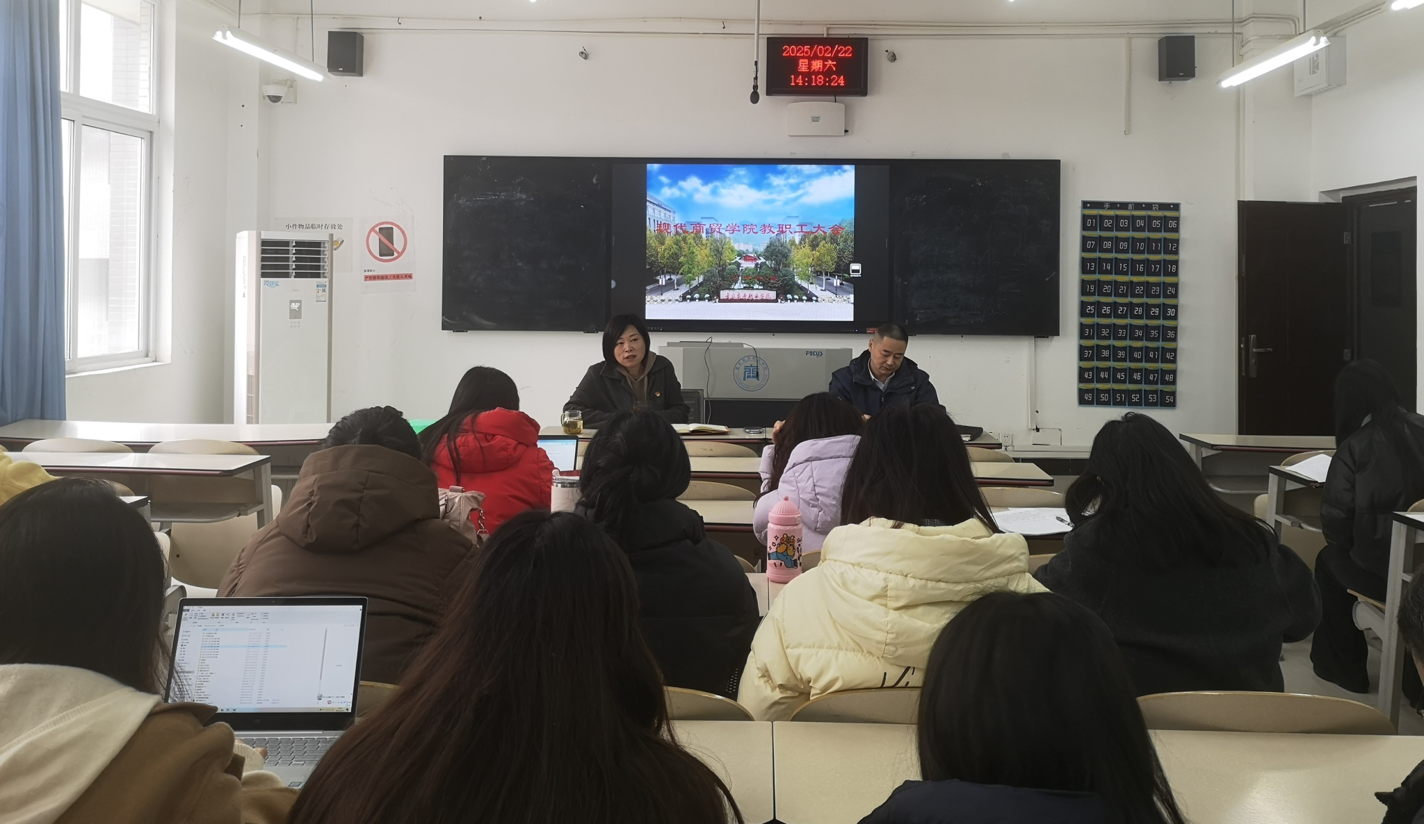 【文/图 贺睿】2月22日下午,现代商贸学院在1308教室召开了2025年春季学期开学教职工大会。学院全体教职工参加会议,共同迎接新学期的到来。会议由学院党总支书记、院长李春红主持。