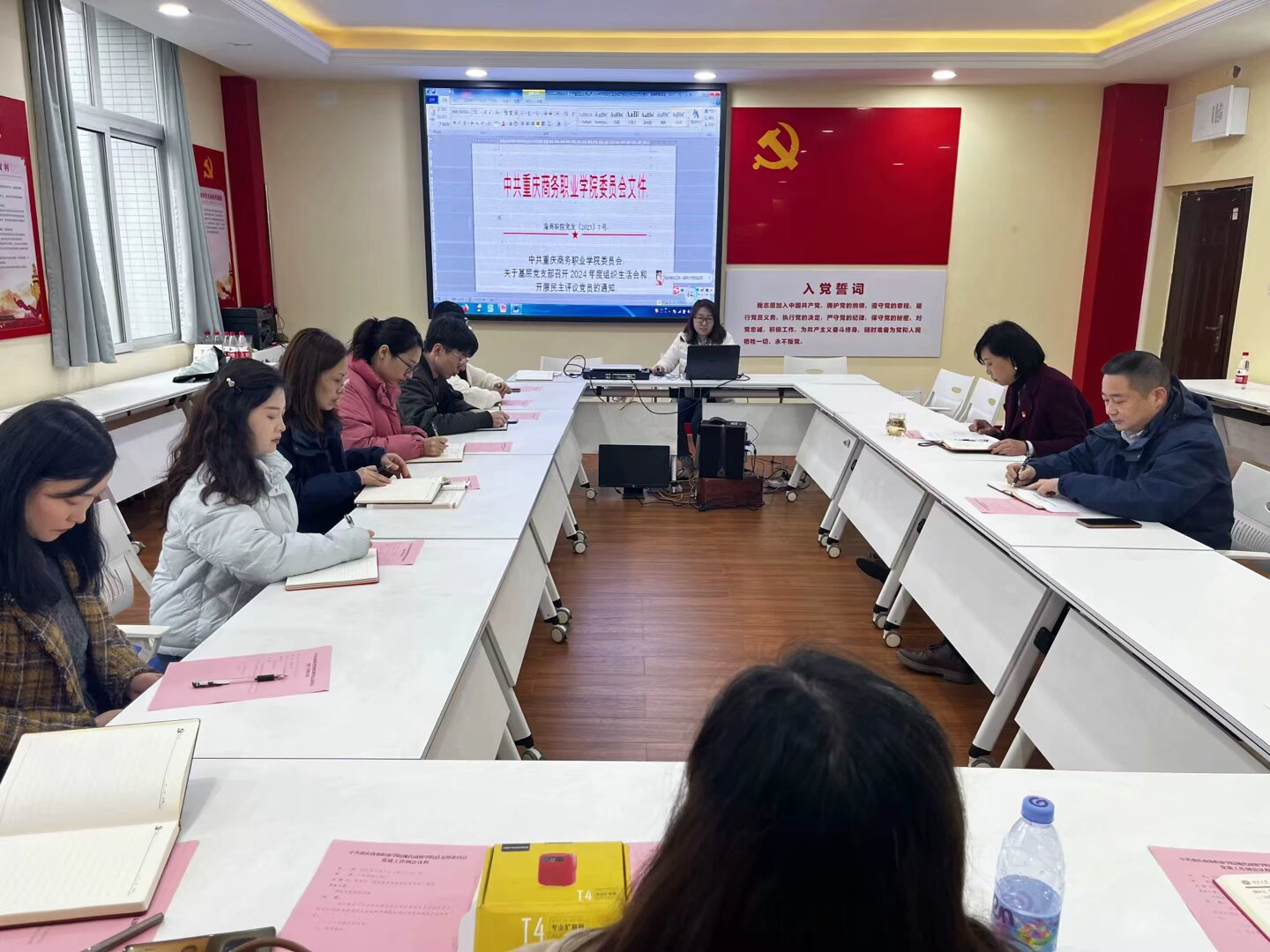 会上,学院专职组织员高红解读了《关于召开2024年度基层党组织组织生活会和开展民主评议党员的通知》(渝商职院党发〔2025〕7号)》文件。随后各支部进行工作汇报、交流。支部书记对去年的支部工作进行反思,指出工作中的不足,针对存在的问题提出了相对应的整改解决方案,并汇报了新学期的党建工作目标与计划。紧接着学院党总支副书记徐鸥围绕学院2025年党建工作计划、要点作出安排部署。
