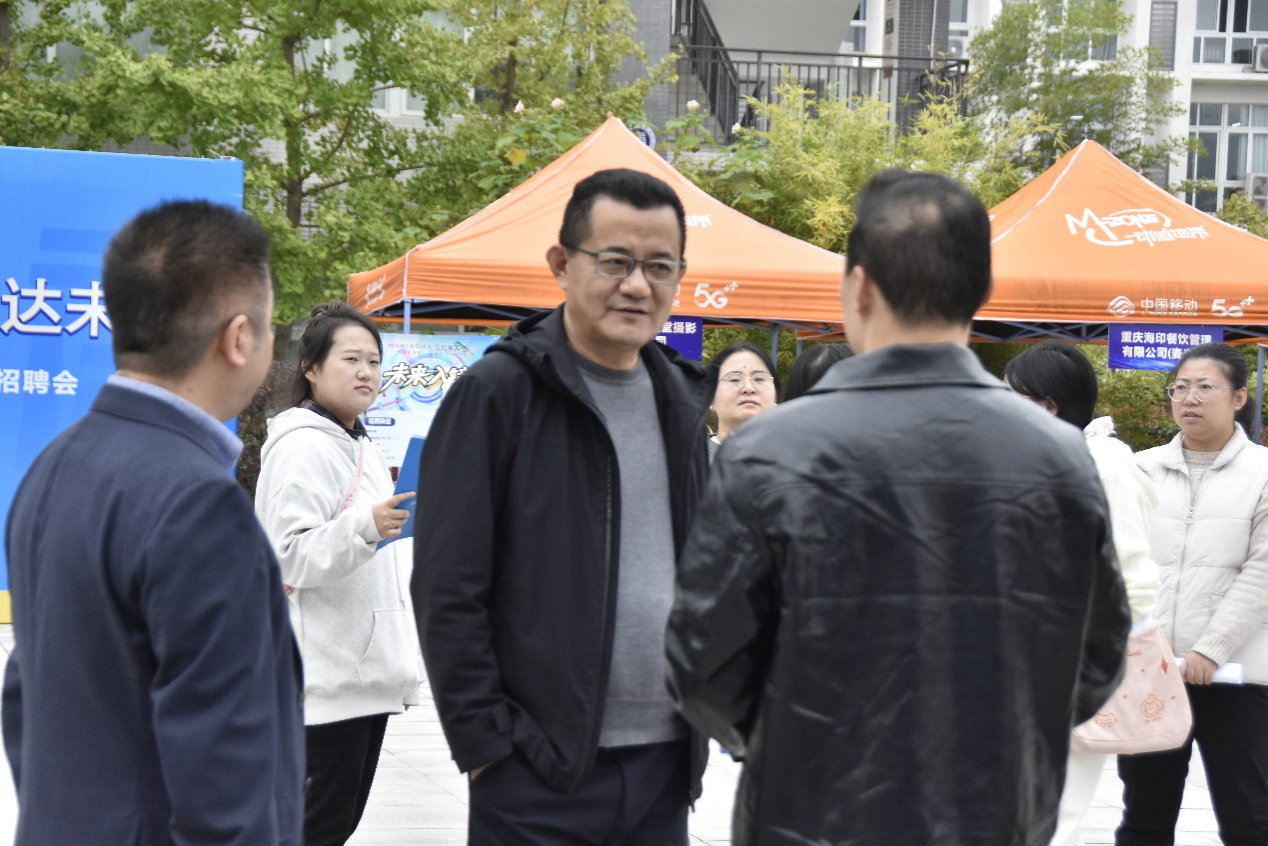 本次招聘会精准对接区域产业发展与技能人才需求,共吸引金夫人儿童天堂摄影有限公司、重庆海印餐饮管理有限公司、成都忆享科技有限公司等12家企业参会,涵盖零售、信息咨询、电子商务等多个行业领域。活动现场,各用人单位通过展位咨询、面对面沟通、现场面试等多种形式,向毕业生详细介绍岗位职责、职业发展路径及福利待遇,多个热门企业前排起长队,现场招聘氛围十分热烈。