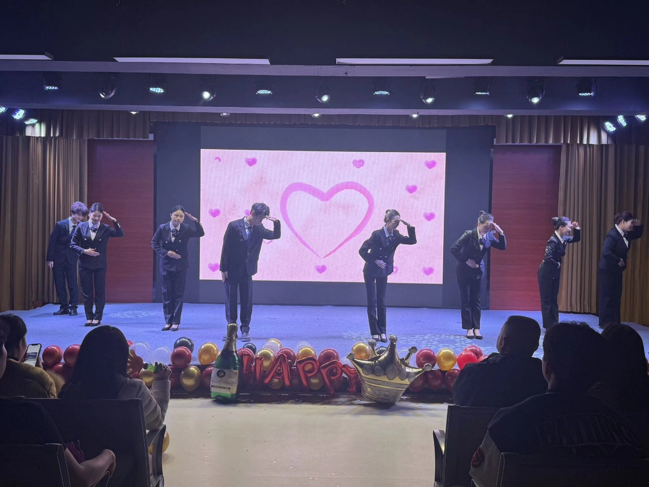 本次活动在激情澎湃的开场舞中拉开序幕,整场庆祝活动形式多样、精彩纷呈;既有深情款款的歌曲演唱,也有活力四射的舞蹈表演;既有温暖动人的小品演绎,也有优雅专业的礼仪操展示与深情激昂的诗朗诵。同学们以饱满的热情和精湛的才艺,充分展现了商贸学子多才多艺、昂扬向上的精神风貌,赢得现场阵阵掌声。