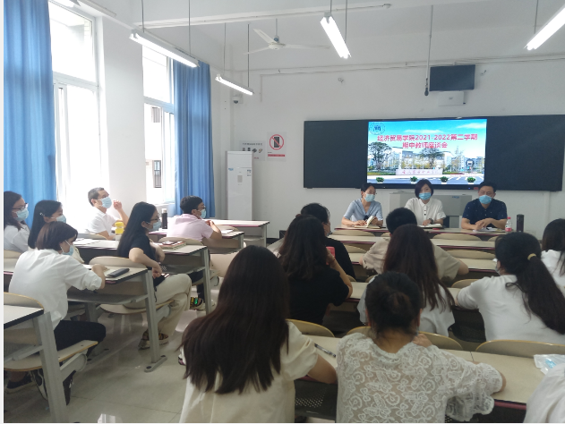 【文/图 张露莎】为进一步了解教师工作状况,规范教学管理,5月9日下午经济贸易学院在1306召开2021-2022学年第二学期期中教师座谈会。学院党总支书记、院长李春红,副书记贺昌,副院长王芳出席会议,全体教师参加会议。