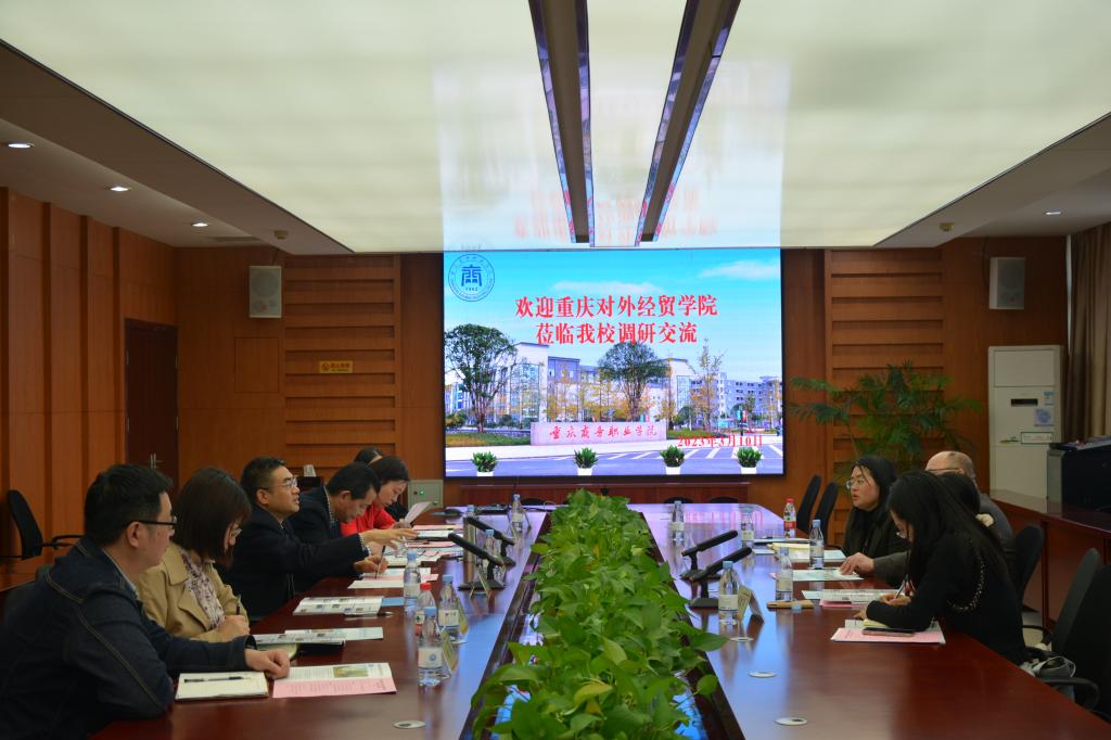 【文/刘豪 图/党委宣传部】3月10日下午,重庆对外经贸学院党委书记、督导专员何大海一行来学校进行调研交流。学校党委副书记、院长江涛,副院长贾小波,教务处处长李焱,经济贸易学院党总支部书记、院长李春红等参加了交流座谈会。