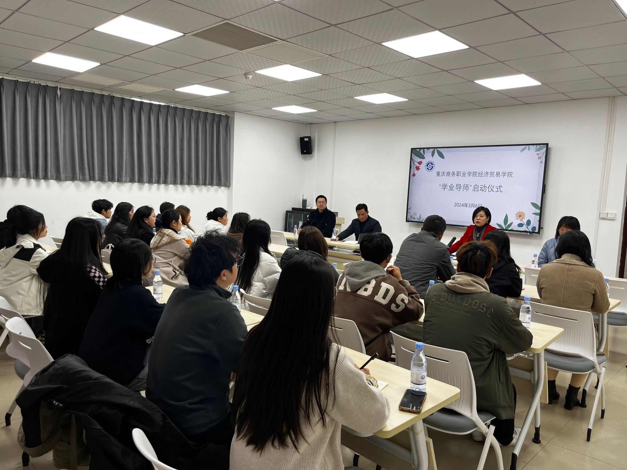 仪式上,学院副院长王芳详细解读了《重庆商务职业学院经济贸易学院学业导师工作实施细则》,希望学业导师从学业规划、专业学习、创新能力培养、创业就业能力等方面对学生进行个性化指导,帮助学生成长。学院党总支副书记贺昌宣读了学业导师名单。