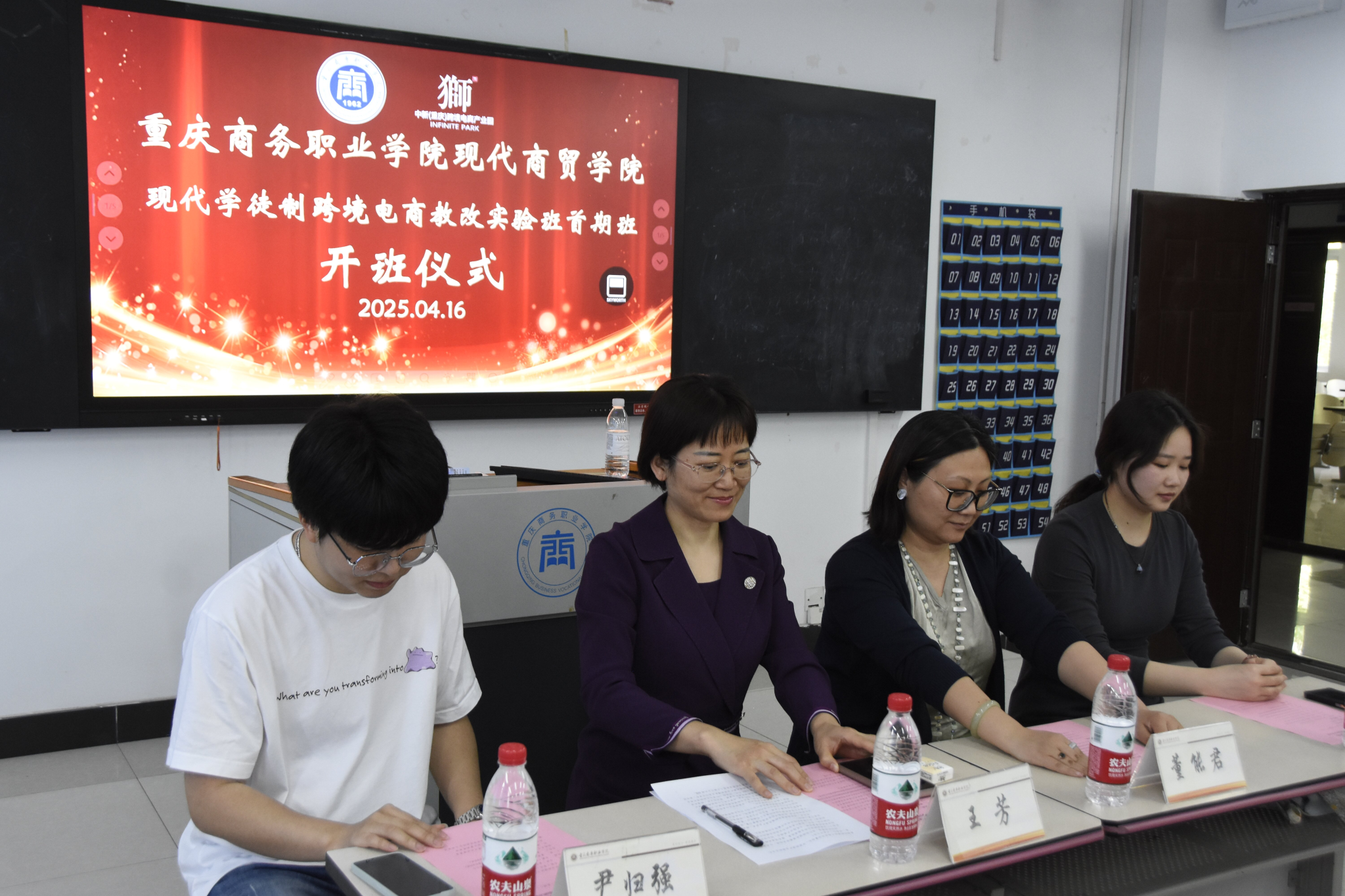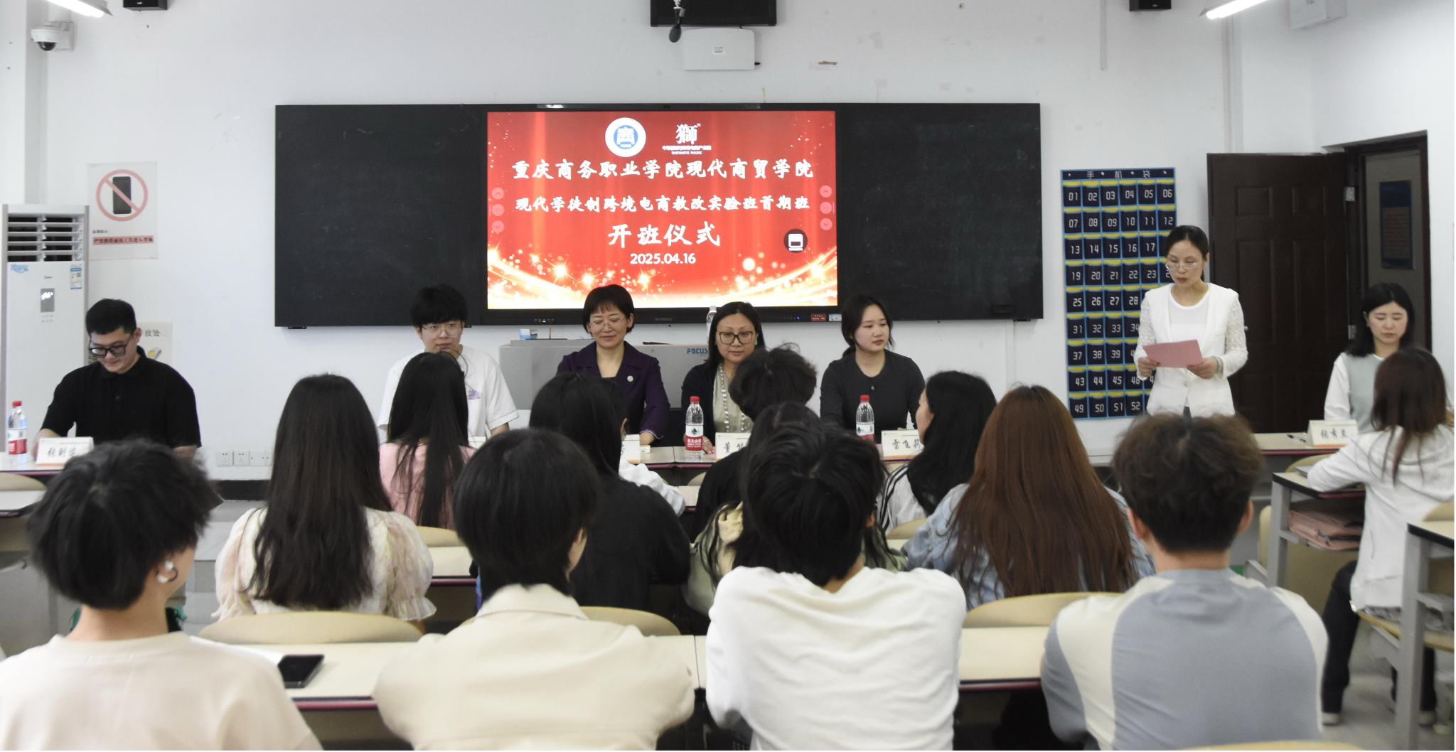【文/图 桂郭芝子】为深入贯彻落实国家职业教育改革实施方案,服务"一带一路"和数字经济发展战略,现代商贸学院国际经济与贸易专业创新人才培养模式,联合中新(重庆)跨境电商产业园企业共建跨境电商教改实验班开班仪式于2025年4月16日举行,重庆跨境电商协会副会长董能君、现代商贸学院副院长王芳、企业代表、专业教师及实验班全体学员共40余人参与活动。