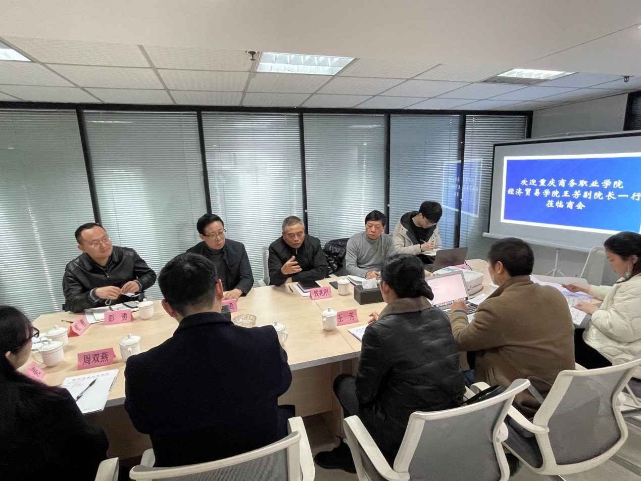 【文/图 崔静】为深化校企政行合作、寻求专业发展机遇,2022年1月12日,经济贸易学院副院长王芳带领各专业带头人,前往重庆市进出口商会进行调研。重庆市进出口商会执行会长钱兆刚、副会长罗士平、副会长兼秘书长罗亚以及企业代表彭勇总经理出席调研座谈会。