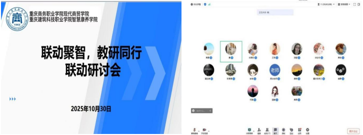 【文/图 黄晏】为深化立德树人根本任务,践行“以学生为中心”的教育理念,共同探索教学评价新路径,10月30日,重庆商务职业学院现代商贸学院与重庆建筑科技职业学院智慧康养学院联合举办“联动聚智,教研同行”主题联动研讨会。两校17名教师通过腾讯会议平台,围绕“学生评价”这一核心议题展开了深度研讨。
