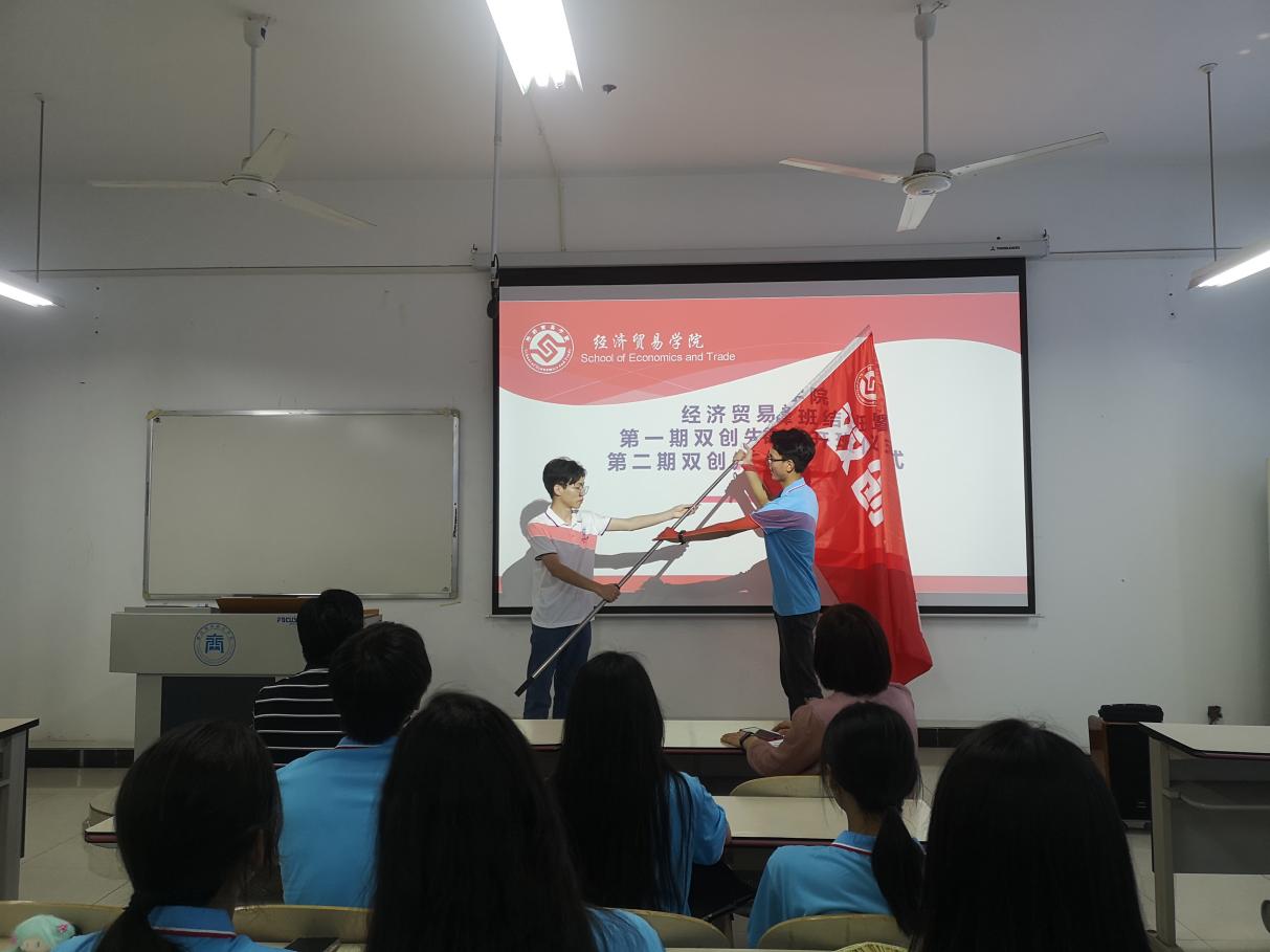 【文/图杜毅鹏】5月31日,经济贸易学院第一期“双创先锋班”结班暨第二期“双创先锋班”开班仪式在1322举行。学院党总支书记、院长李春红,副书记贺昌出席开班仪式,全体教职工及50名学员参加了开班仪式。开班仪式由教务办主任刘豪主持。