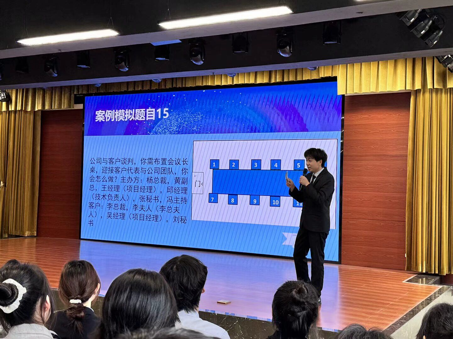 赛后,杜玲老师对选手表现进行了专业点评。她充分肯定了选手们对商务礼仪规范的掌握程度,同时指出在日常礼仪与商务礼仪的创新性融合方面尚有提升空间,并强调日常礼仪是商务礼仪的基石,应更注重两者融合的自然性与巧妙性。优秀学长代表龙林结合自身实践经验,对选手们的表现给予认可,并针对临场应变时的语言表达精炼度与肢体动作协调性提出了宝贵建议,鼓励大家注重日常积累,持续提升个人综合素养。
