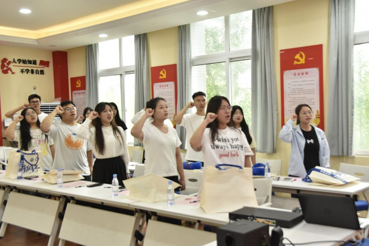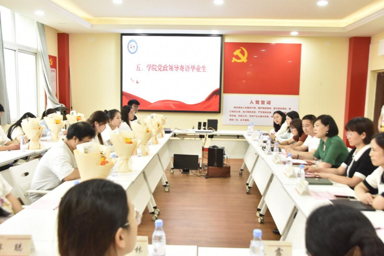 “忆往思今·话梦前行”毕业生代表座谈会作为核心环节,特邀10名名企就业、升学创业、基层服务等多元去向的学子参与。座谈会上,毕业生深情分享成长感悟,教师代表寄语学子“坚持终身学习 锤炼复合本领”,学院党政领导寄语学子“扎根祖国热土,服务国家发展”。会上,全体毕业生代表面向党旗墙庄严宣誓——“胸怀‘国之大者’,矢志强国复兴!请党放心,强国有我!”铿锵誓言筑牢家国情怀,为学子扣好职场“第一粒扣子”。