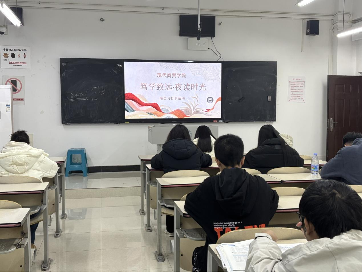【文/图 谢颖】为营造勤学善思的优良学风,培养学生自主学习和时间管理能力,现代商贸学院自2025年10月27日起,面向全体在校学生组织开展“笃学致远·夜读时光”晚自习打卡活动。活动由学院团总支指导、学生会主办、学风建设中心具体承办。