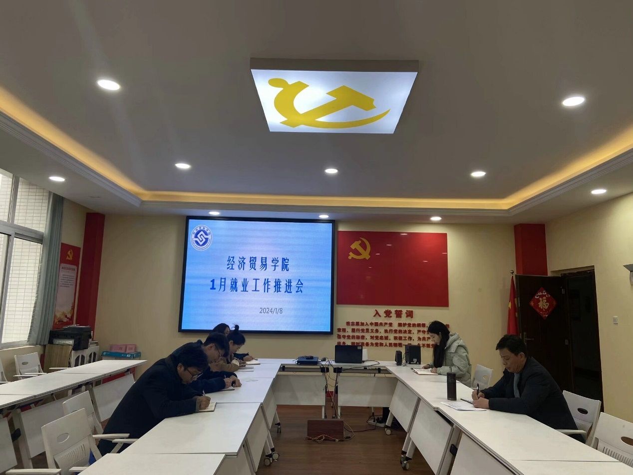 【文/图 蒋杨】2024年1月8日,经济贸易学院在1301召开2024届毕业生就业工作推进会,学院党总支副书记贺昌、学团办副主任王瑶、毕业生辅导员、就业干事蒋杨参会,会议由贺昌主持。