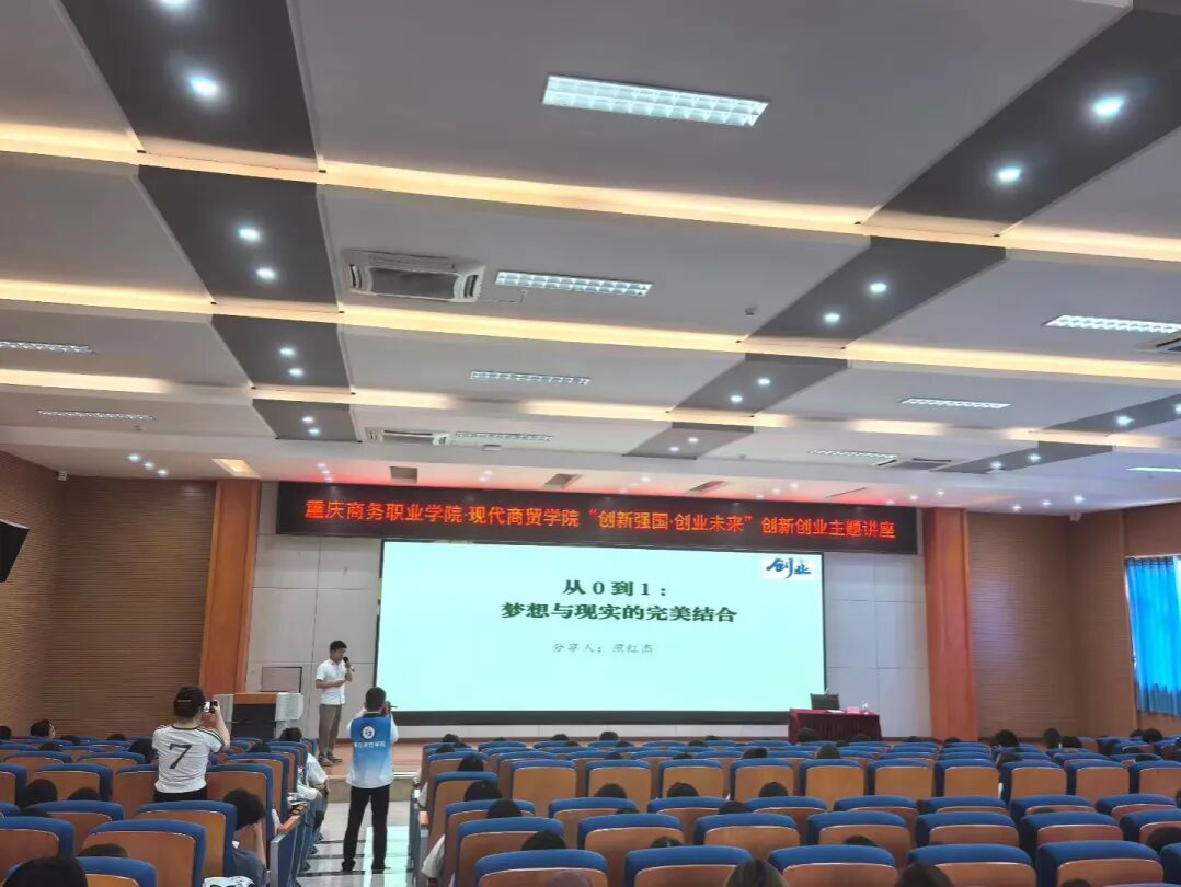 【文/图 牟聪】 为积极响应国家创新驱动发展战略,践行新《职业教育法》,培养学生创新创业思维,激发学生创业热情,提升学生创业能力,2025年10月11日,现代商贸学院在学术报告厅举办“创新强国·创业未来”创新创业系列主题讲座。本次讲座由重科城微报、重庆都市圈、重庆城新媒体矩阵创办人、重庆西智互文科技有限公司创始人范红杰主讲,商务管理专业负责人牟聪主持,2024级和2025级250余名学生参加。