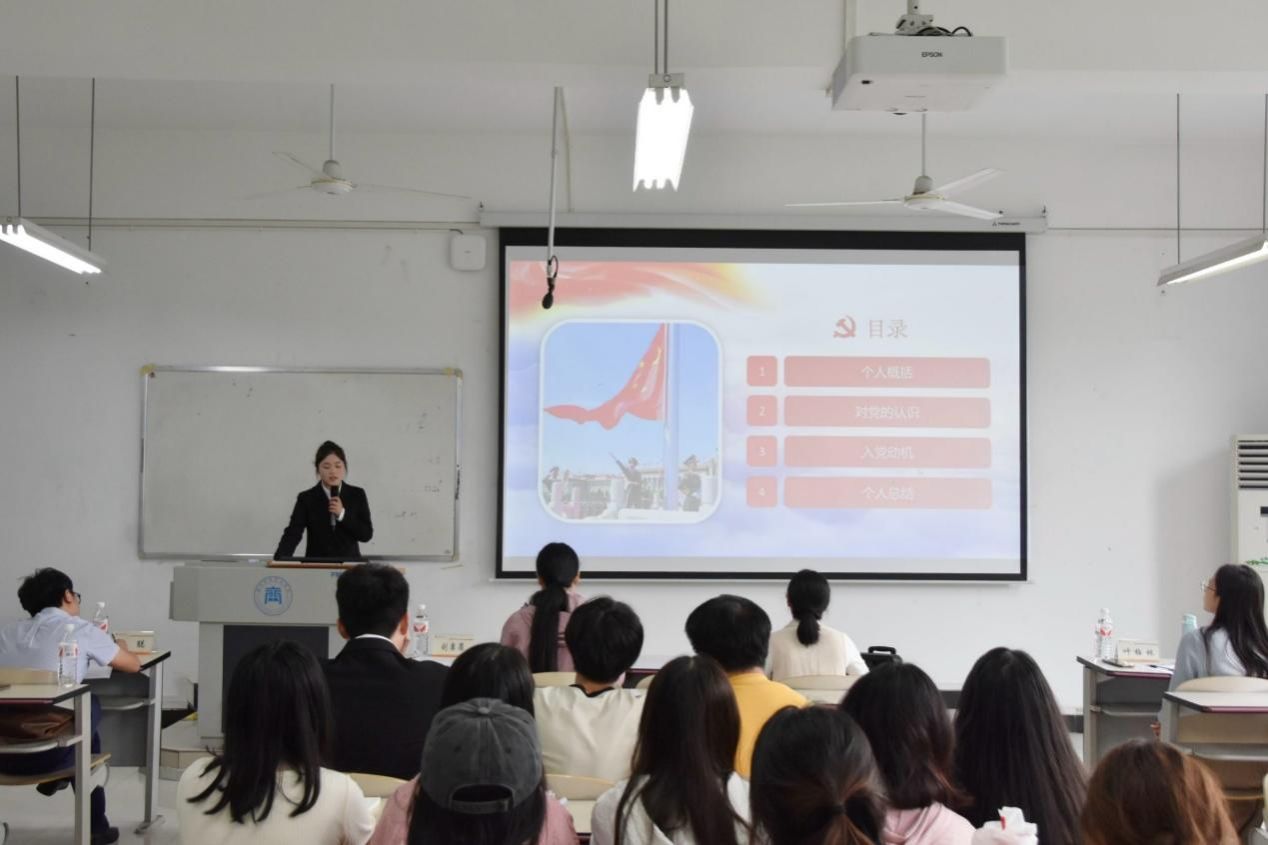 【文/图 王瑶】为严把党员发展入口关,提高党员发展质量,贯彻“控制总量、优化结构、提高质量、发挥作用”方针,进一步健全我院学生党员发展制度,贯彻落实党纪学习教育活动,2024年4月29日,经济贸易学院学生党支部在1322教室举行了第6期入党积极分子答辩会。学生党支部书记王瑶、组织委员谢蓉,辅导员牟聪、叶梅林出席会议担任评委,支部全体学生党员、未满一年的入党积极分子列席此次会议。