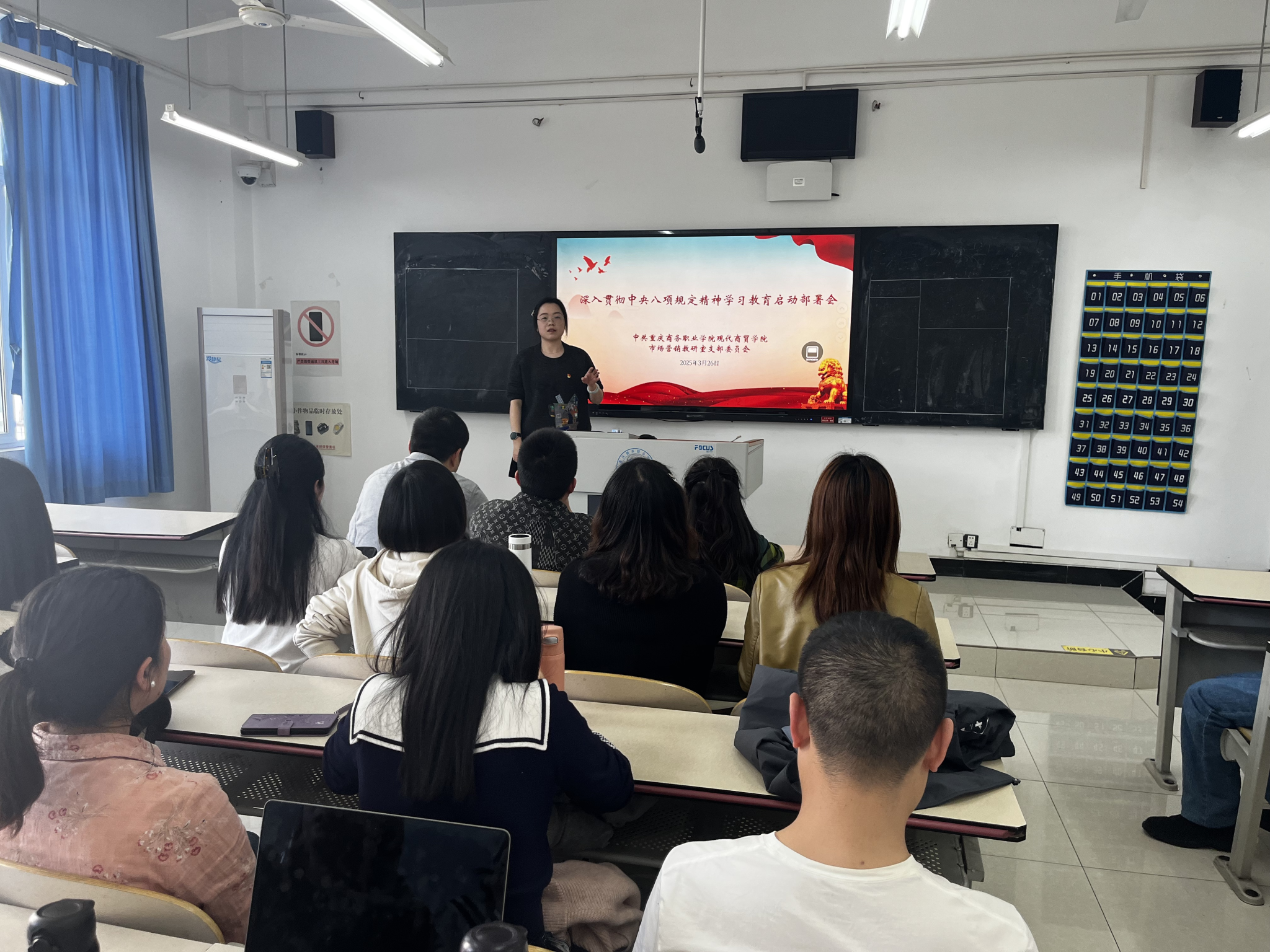 【文/图 高红】为深入贯彻中央八项规定精神,根据学校党委部署要求,现代商贸学院党总支于3月26日在1310教室召开深入贯彻中央八项规定精神学习教育启动部署会。学院全体教职工参会,会议由学院党总支书记李春红主持。