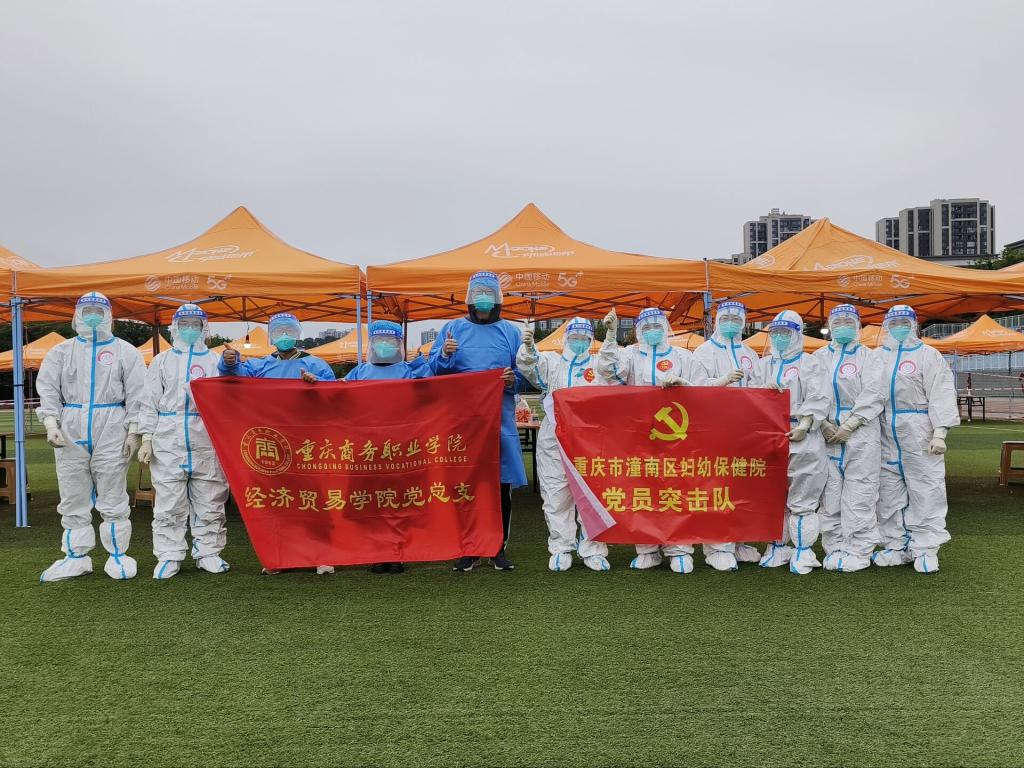 学院党总支与潼南区妇幼保健院党员突击队开展共建活动,积极投身学校的核酸检测志愿者工作中,负责引导队伍分流、信息扫码登记等,确保现场工作有序推进。党员同志们主动担当作为,坚持深入一线,用实际行动在学院上下营造正气充盈、同心抗疫的良好氛围。
