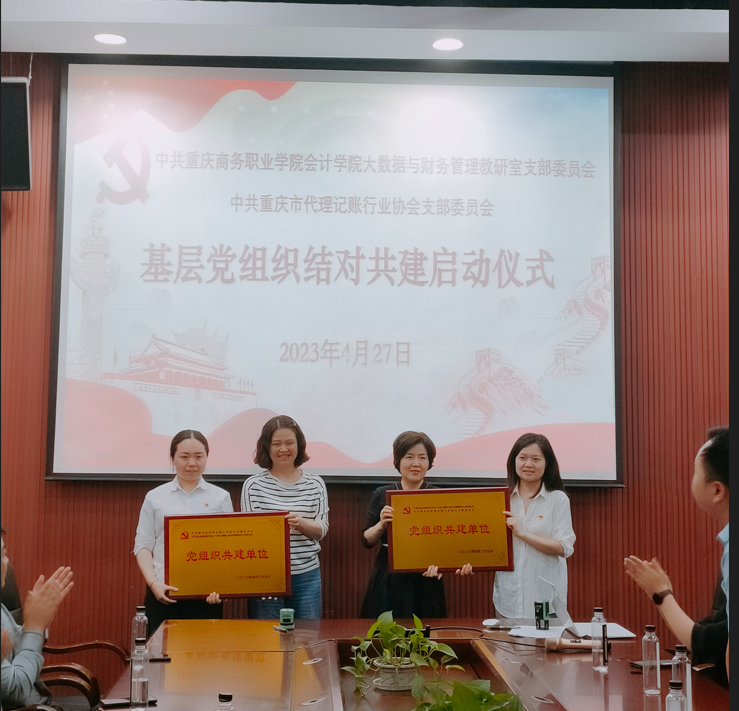 【文/图 张文娟】2023年4月27日,重庆商务职业学院会计学院大数据与财务管理教研室党支部与重庆市代理记账行业协会党支部开展基层党组织结对共建协议启动仪式。双方以“凝聚党员、加强组织、服务社会、促进和谐、推动工作”为目标,通过发挥双方党组织的整合作用,实现资源共享、共驻共建、活动共办,努力提高基层党组织活力。