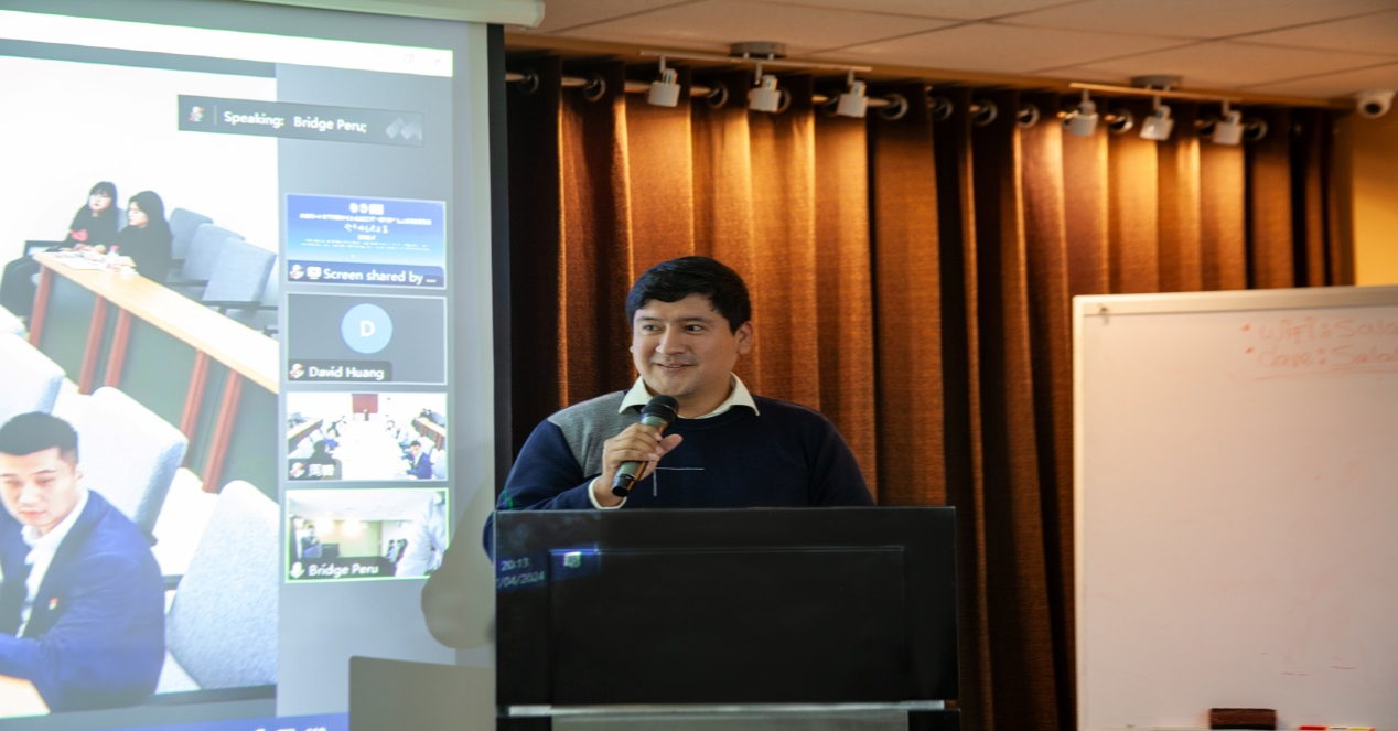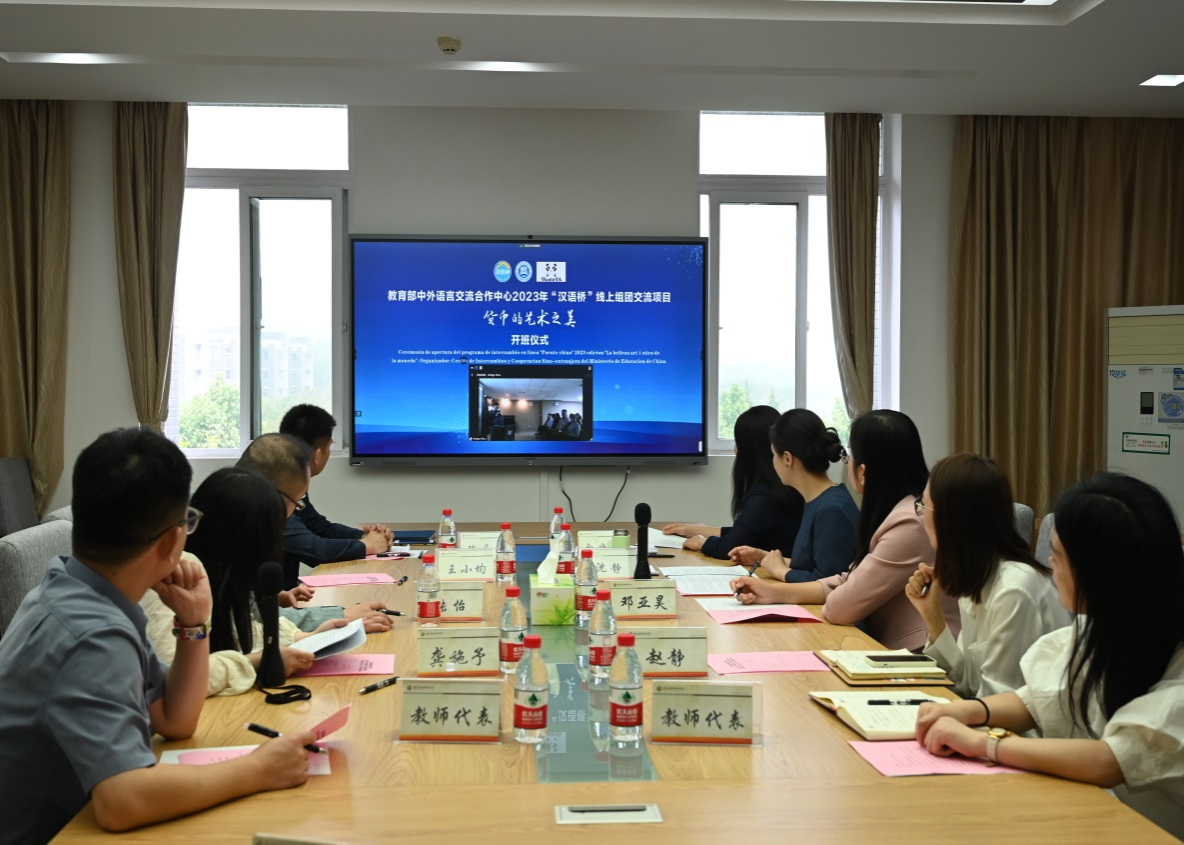【文/图 马箫】北京时间2024年4月18日8点30分(秘鲁当地时间2024年4月17日19点30分),由教育部中外语言交流合作中心主办、我校对外合作交流办公室、会计学院承办的“汉语桥”线上团组交流项目——“货币的艺术之美”在学校第五会议室举行开班仪式,学校党委副书记余晓玲出席开班仪式并致辞,会计学院党总支书记、院长沈静主持会议。